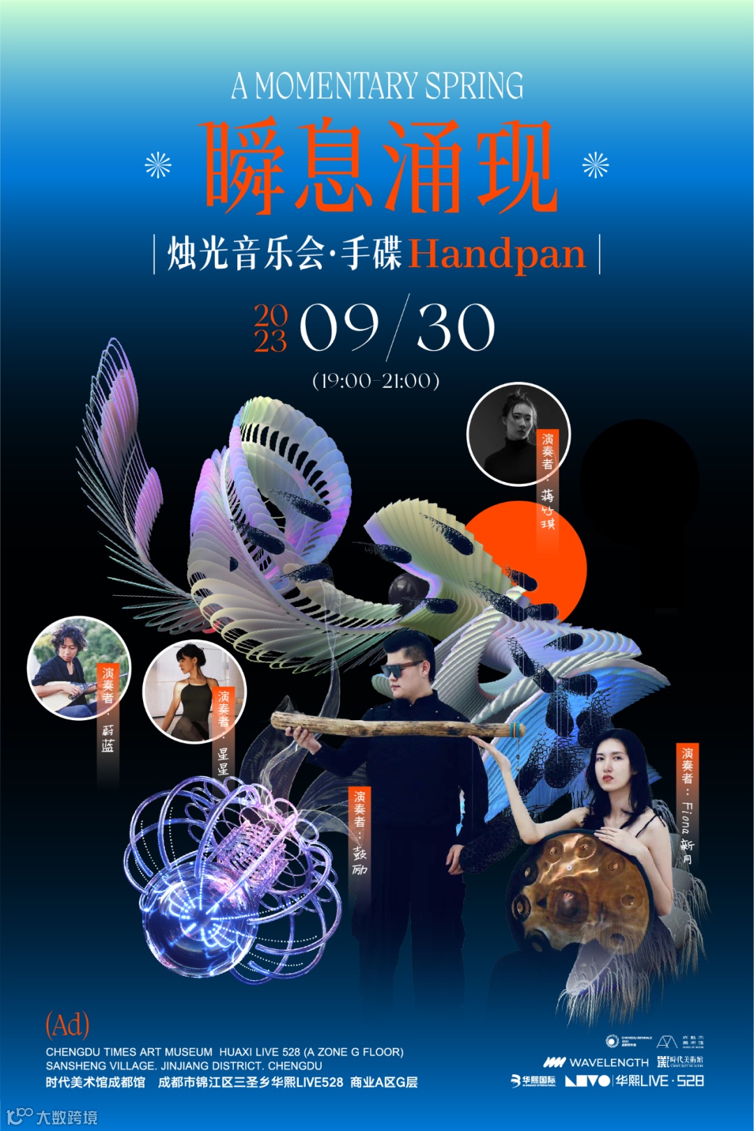 手碟·Handpan 在与歌唱、舞蹈等情感浓厚的艺术形式互动结合中,会产生层次丰富的观赏效果。本次活动希望让观者随着流动的乐音,沉浸式体验展览作品的无限魅力,感受作品与空灵音乐间的共鸣,