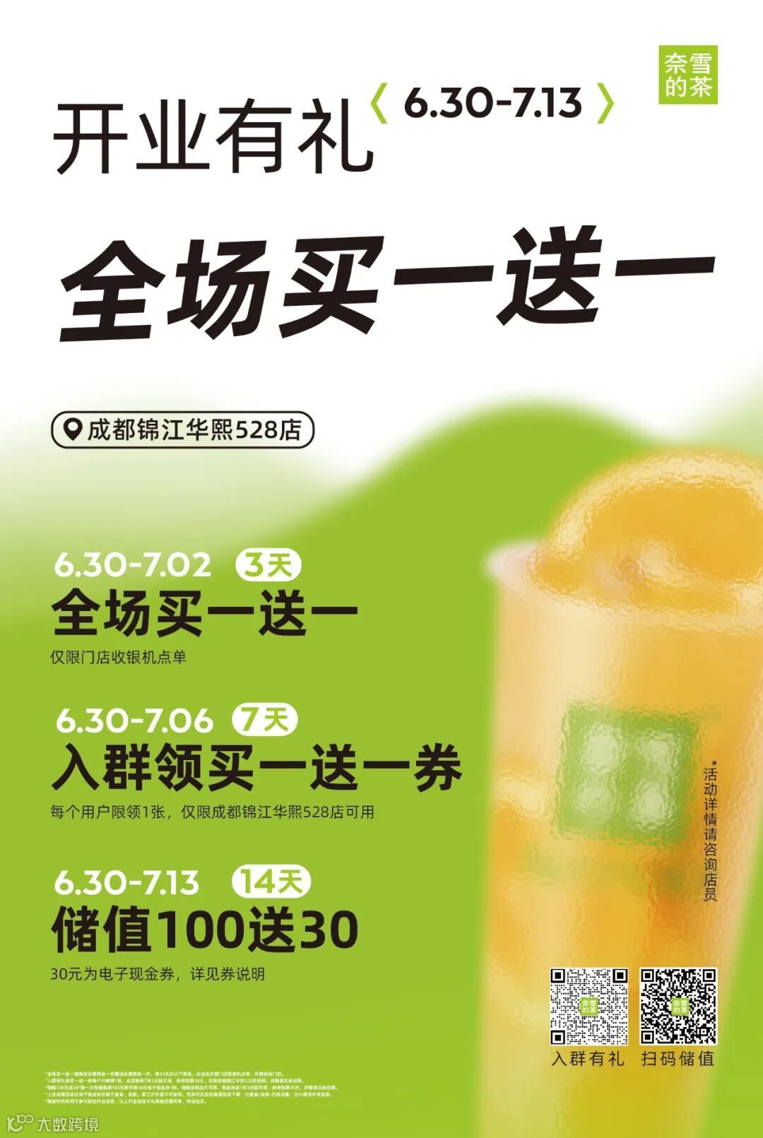 奈雪的茶华熙LIVE·528店!6月30日正式开业!全场买一送一!又多一个喝茶好去处!一起来奈雪尝新品、薅羊毛吧~