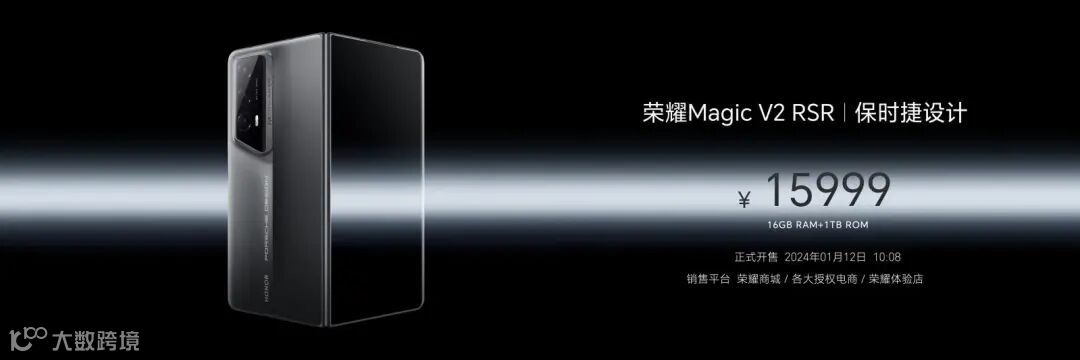 此次发布会上,荣耀还与保时捷设计共同发布了全球首款保时捷设计折叠屏手机荣耀Magic V2 RSR 保时捷设计。产品机身设计灵感来自保时捷经典飞线,配备飞线式溜背舷窗、5D羽纤机身,以及斯图加特原厂大师调色的玛瑙灰配色。产品外屏上,荣耀带来行业首发的荣耀金刚巨犀玻璃,基于第二代纳米微晶玻璃技术,通过超跑引擎同款超耐磨材料氮化硅,使屏幕在10倍抗摔的基础上实现10倍抗刮的特性,并通过了SGS多场景玻璃抗刮耐摔能力五星金标认证。荣耀Magic V2 RSR保时捷设计售价为15999元,将于2024年1月12日10:08在荣耀商城、各大授权电商、荣耀体验店、保时捷中国官网、授权保时捷中心正式开售。