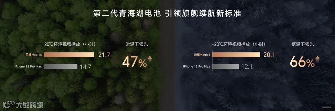 第二代青海湖电池技术,以及全新的自研能效增强芯片HONOR E1和荣耀都江堰电源管理系统,使荣耀Magic6的电池容量达到5450mAh,荣耀Magic6 Pro电池容量更是高达5600mAh,成就旗舰产品中领先的续航能力。荣耀Magic6系列在低温、低电量情况下的综合续航能力也大幅提升,实现了行业低温续航技术的新突破,让用户在恶劣环境、极限场景下,可以有更多的机会用手机与他人联络或处理紧急情况。