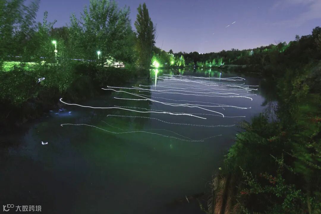 也会用激光划破城市的夜空,创造仿佛科幻作品中的“力场”一样的城市“边界”。