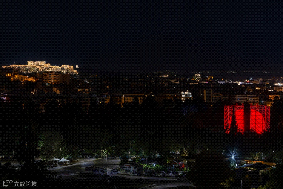 他让“分裂”的两个半球在雅典的夜空中和雅典卫城交相呼应。