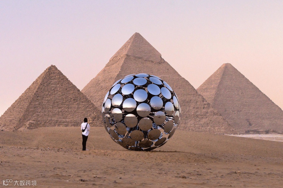 他让反射着阳光的未来主义球体出现在历经数千年风沙的吉萨金字塔,也让历史与未来、经典与新生在此交汇。