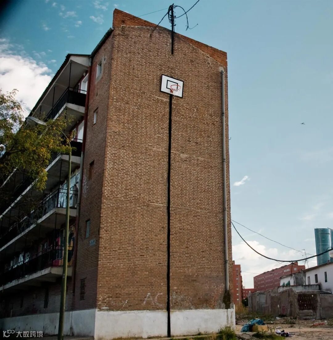 比如,凭空出现在高高的外墙上的篮球架。