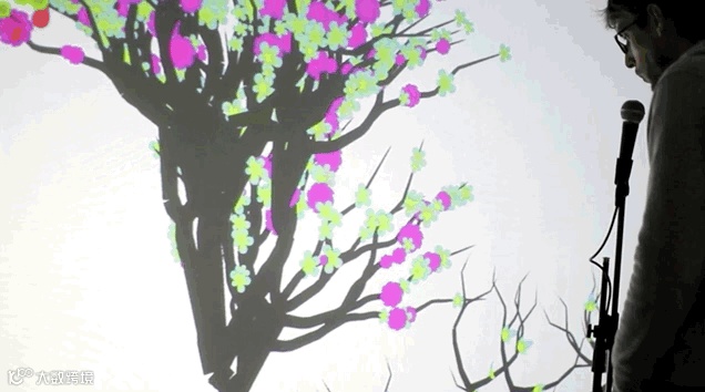 2017年,Lab212 Collective 在当代艺术的圣殿——蓬皮杜艺术中心展出了作品《Moc》。与此前的作品相似,《Moc》也具有极强的互动性。当观众对着展厅中的麦克风发出声音时,作品视频中展示的树就将开始生长。视频中的风景和树的长势也随着声波的变化而改变。