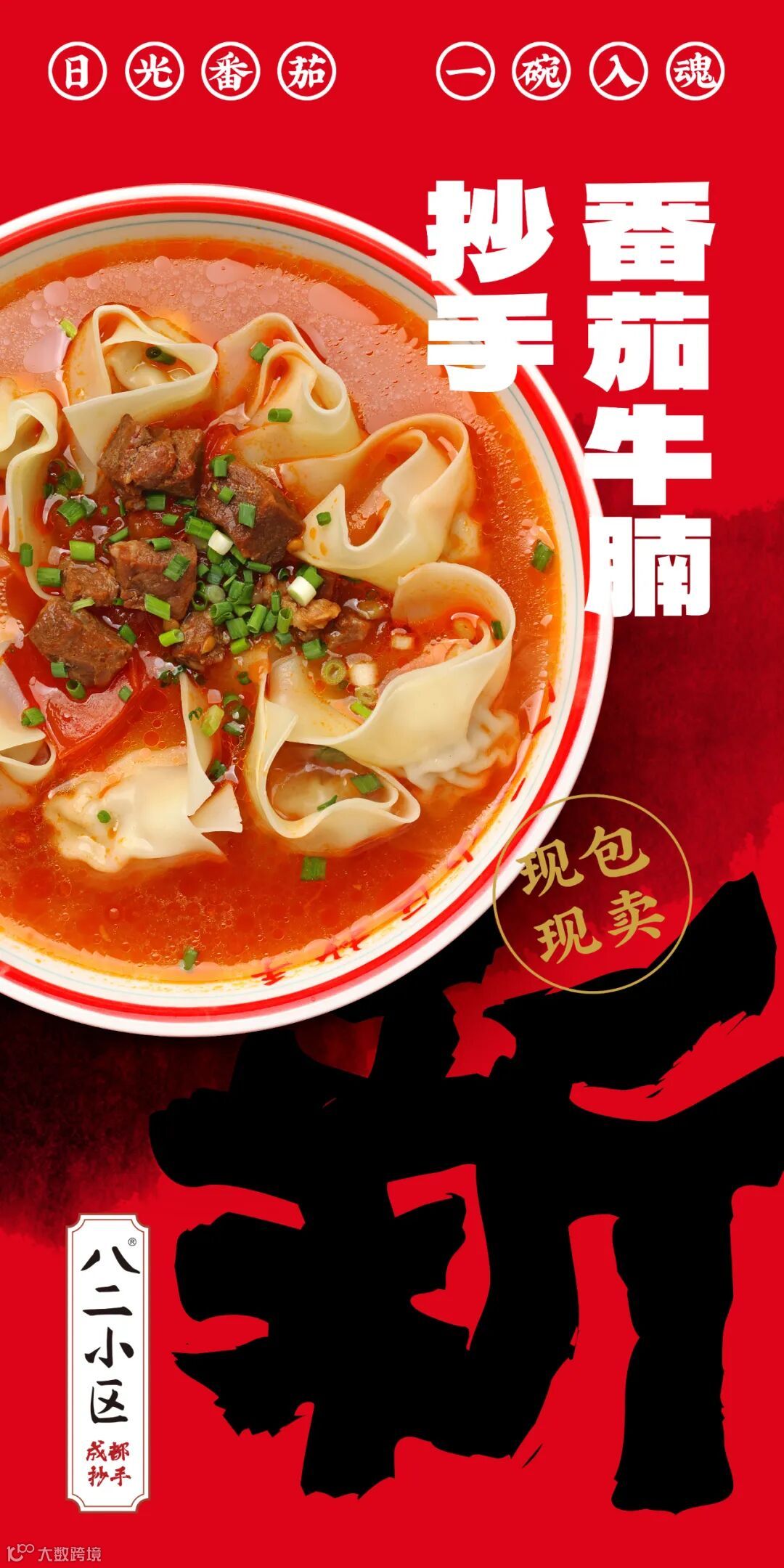 番茄牛腩抄手:新鲜牛腩净肉制作而成,精选攀枝花番茄,色泽鲜艳、甜酸咸口、肉烂不腻。
