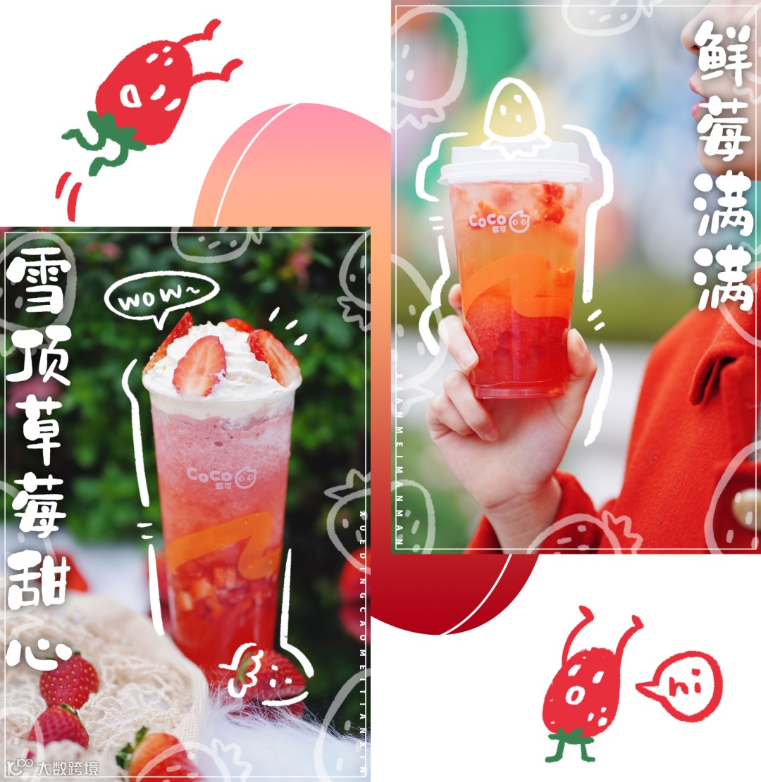 脆波波、草莓果肉强强联手,加上CoCo优选的绿茶做汤底,金黄透亮的茶汤,滋味甘醇清香。叮!一杯草莓甜心新鲜出炉!