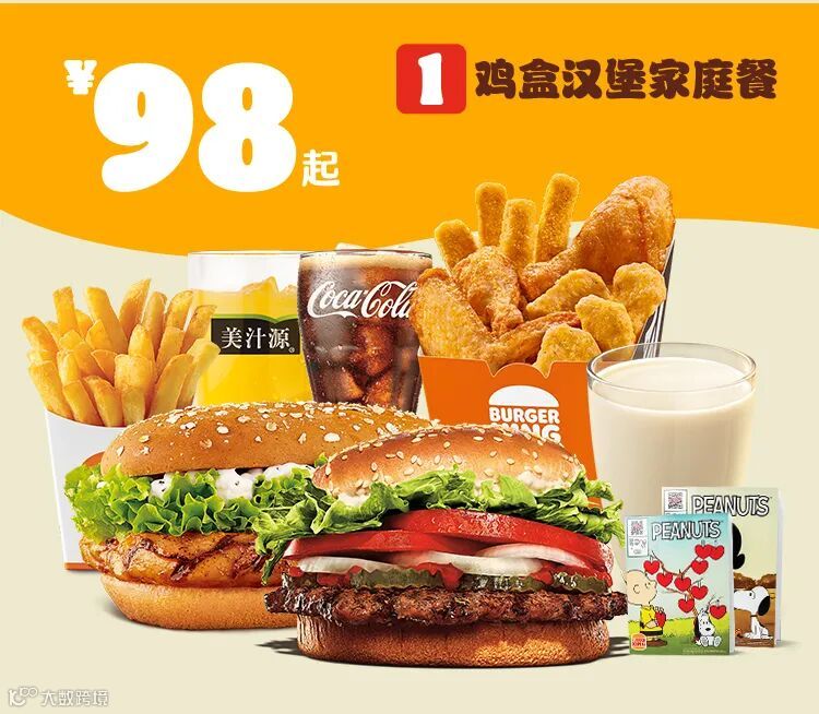 *外卖渠道价格解释:图示如有划线价格,并非指原价,而是指不参加优惠活动情况下该产品在汉堡王外送销售的常规价格(或者指其中所含单品的常规单买价总和)。除非图示另有解释,否则图示如有节省的金额或折扣比例,是与不参加优惠活动情况下在汉堡王外送单独购买该产品的常规价格(或者其中所含单品的常规单买价总和)相比较。