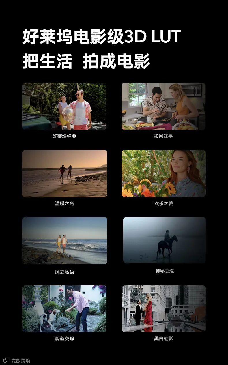 共同开发了8种电影风格的10bit 3D LUT影调。
