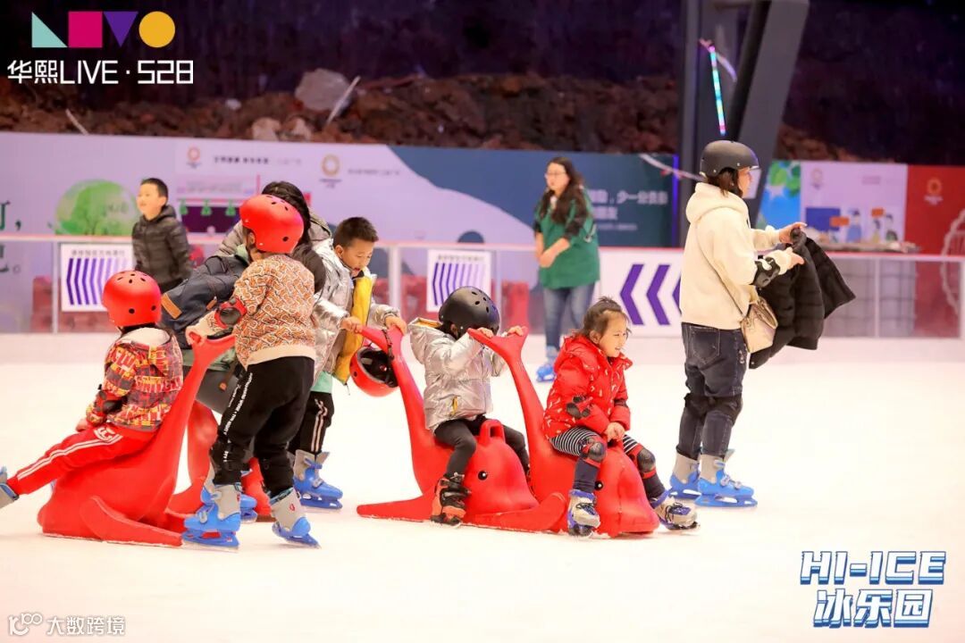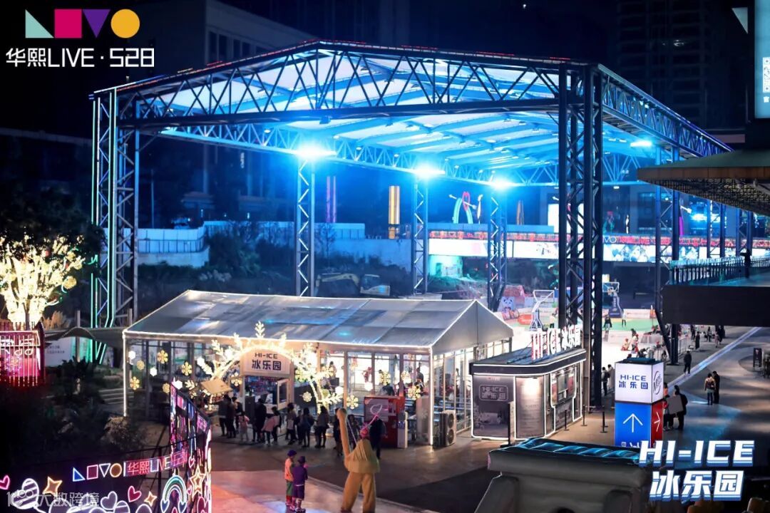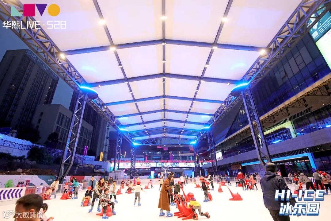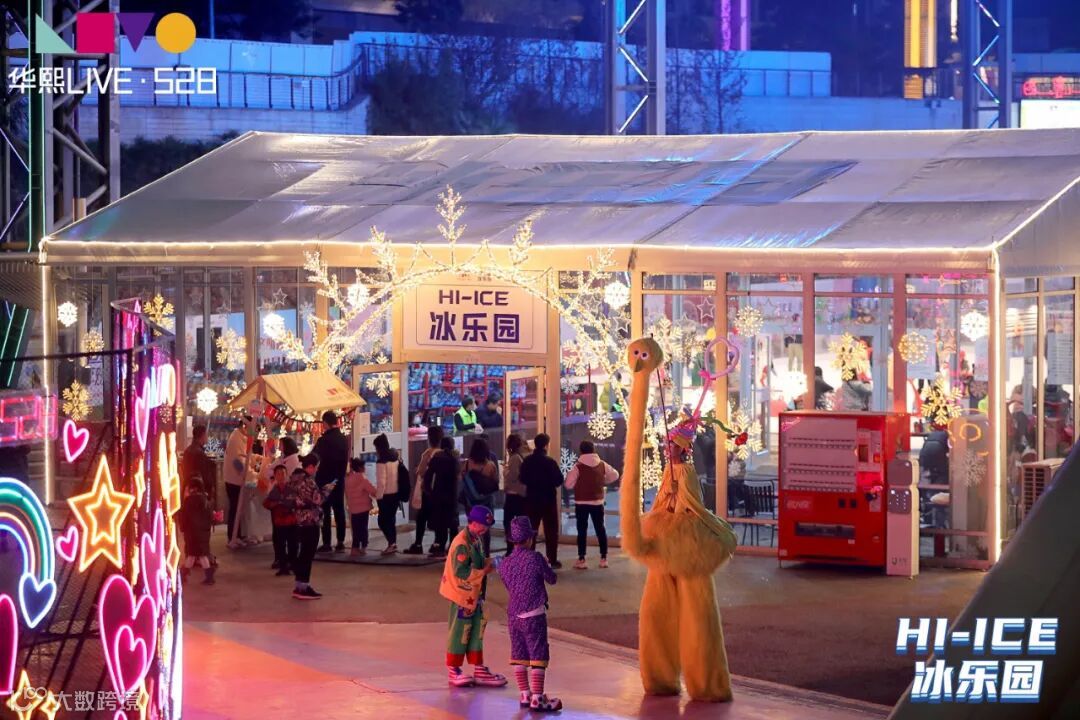HI-ICE冰乐园就在以沉浸式互动体验为核心元素的现代商业街区,华熙LIVE·528里面,是由华熙集团全资投资建设并独立运营的大型户外冰场。