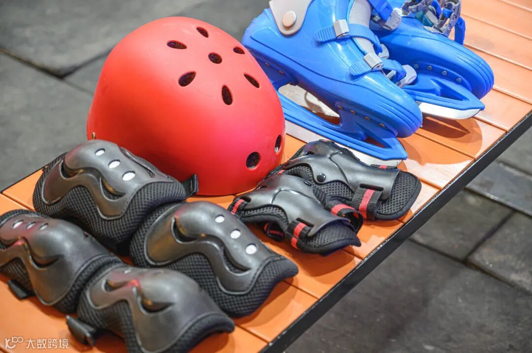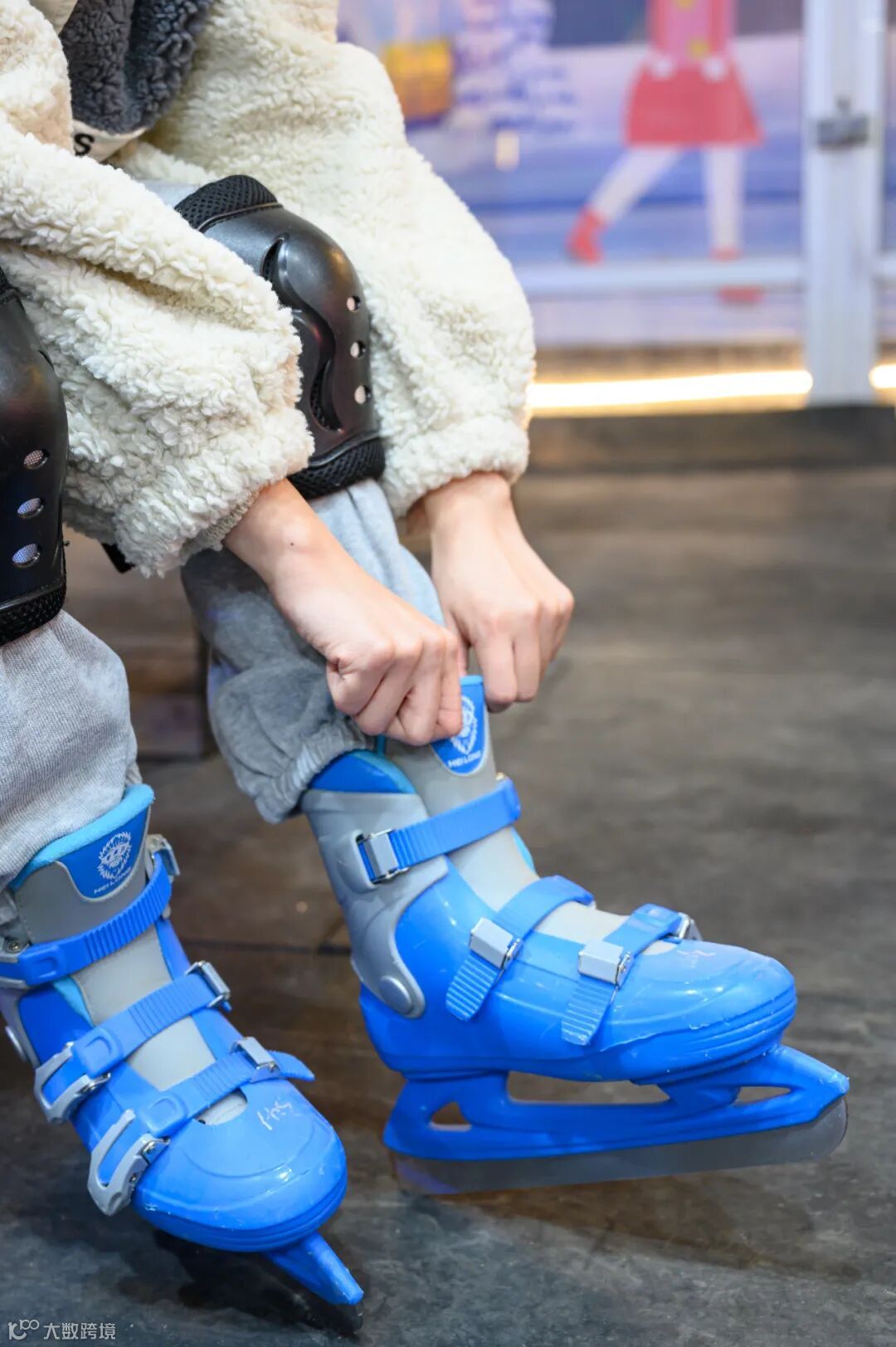 挑选完鞋子之后,工作人员会为你递上护腕、护膝、头盔等装备。等一切都佩戴好了之后就可以出发去冰场了!(装备室的地面铺了防滑垫,不用担心穿上冰鞋会摔倒哦~)