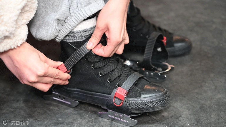 如果是完全的新手小朋友或者是脚比较小的姐妹,还可以选择不容易摔的双冰刀,稳定性要比冰鞋好些,直接套在鞋上就能使用。