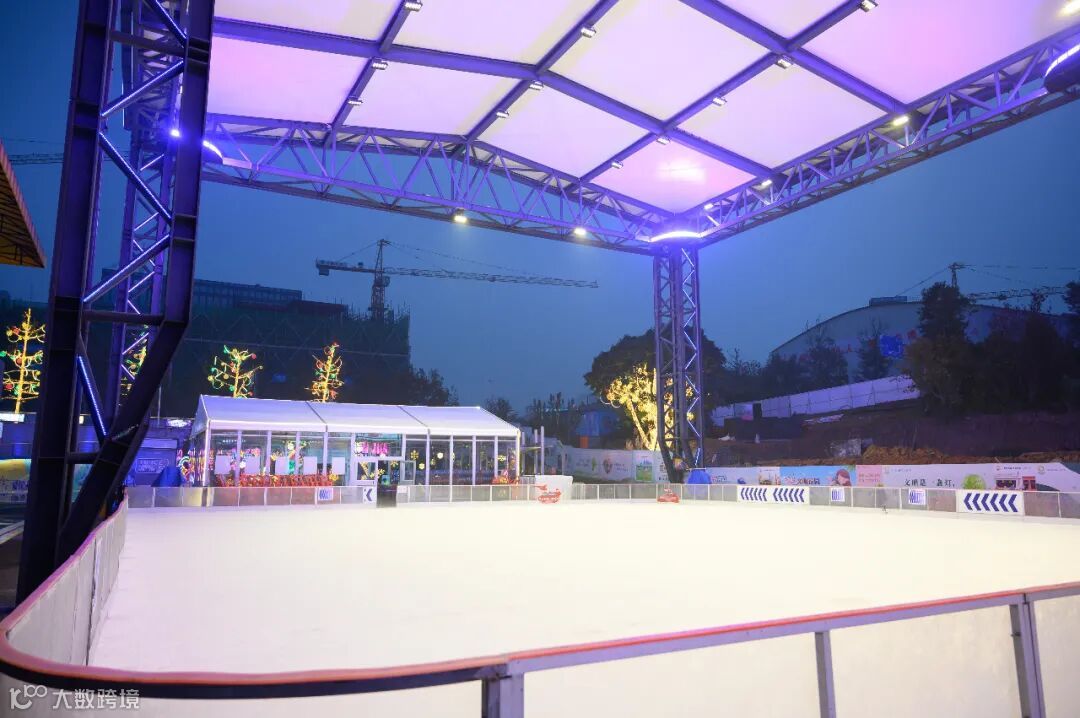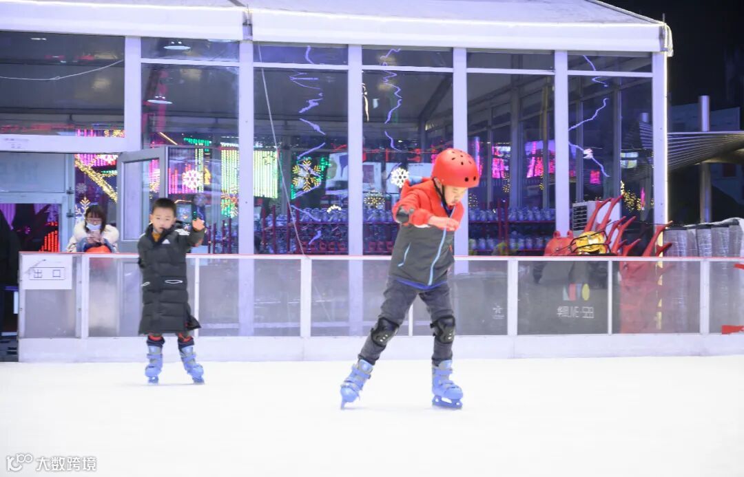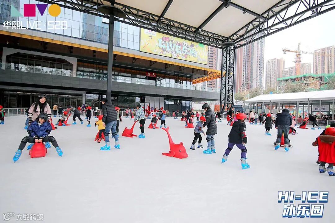 虽然在成都各大商场内,大大小小的室内真冰场并不少见,但是户外真冰场却鲜少见到。