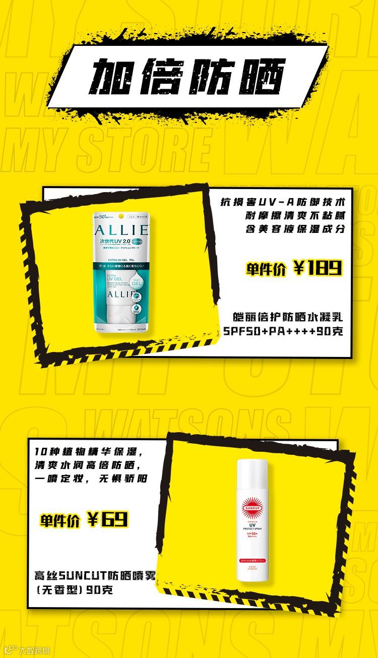屈臣氏| 夏日防晒|日本热销防晒¥69/件,沐浴露¥29,洗发露低至5折!