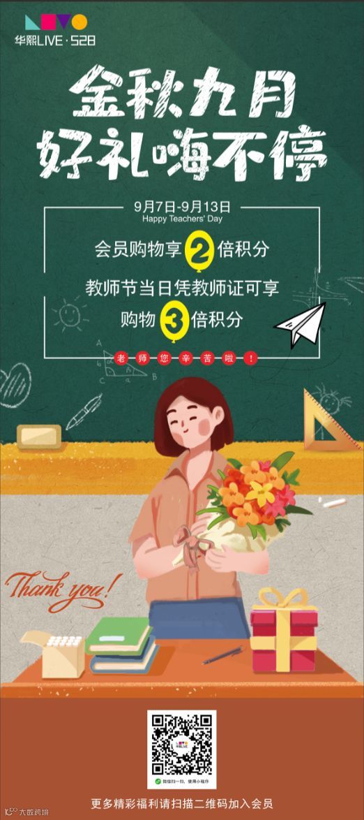 教师节当日凭教师证可享购物3倍积分