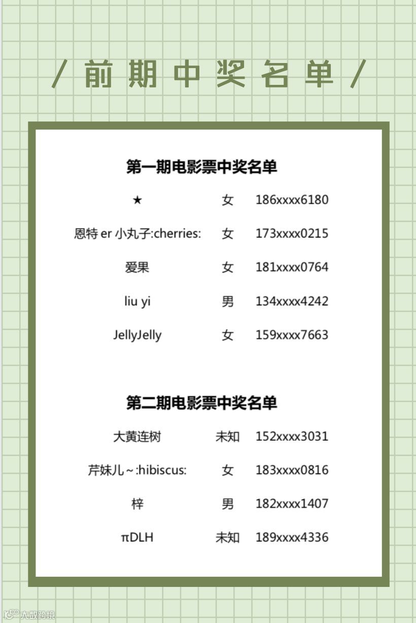 前期中奖名单公布