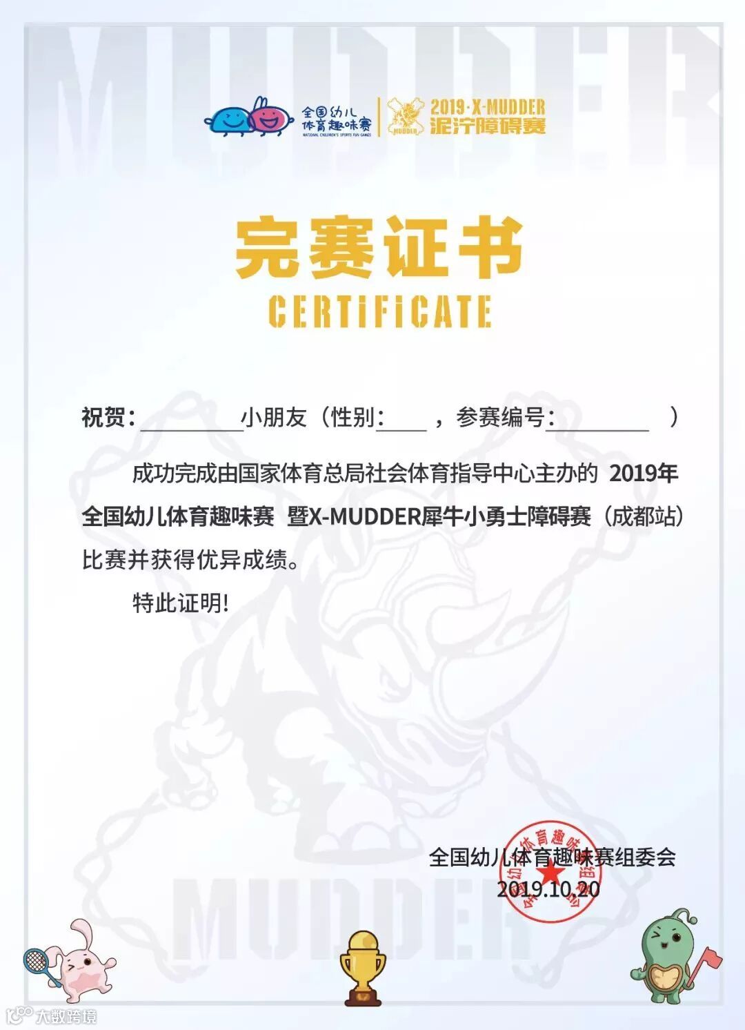 全国幼儿体育趣味赛组委会统一提供的参赛证书