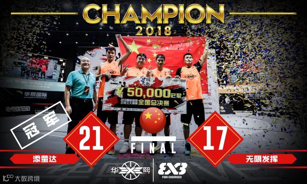 经过为期2天,32场比赛的激烈争夺,最终来自重庆的添萤达“杀出重围”,拿下2018华熙3X3全国总决赛总冠军,北京无限发挥和宁波舟山港队分获亚、季军。他们将代表中国参加下周末同样在“华熙LIVE·528”M空间举行的2018国际篮联三对三大师赛成都站。