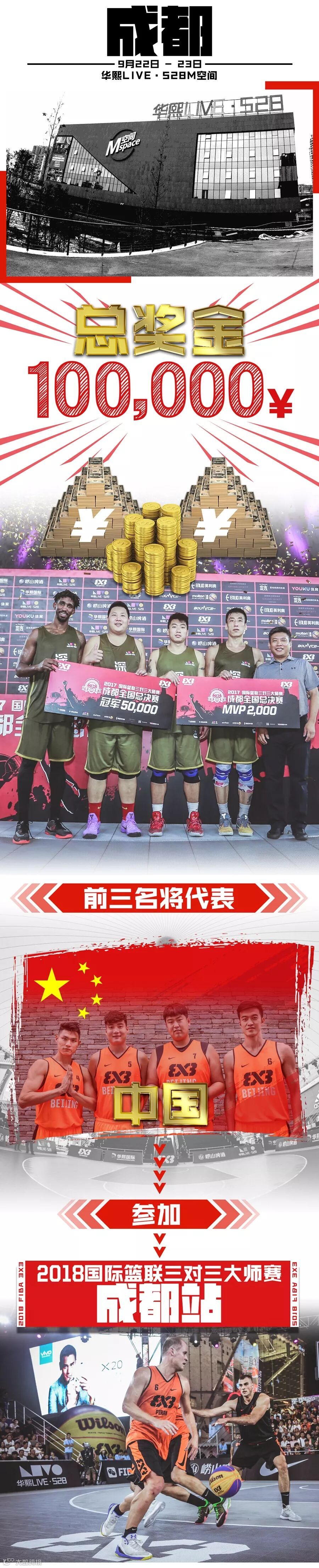 全国总决赛总奖金高达10万元,同时他们中的前三名也将背负着代表国家的使命,出战2018国际篮联三对三大师赛成都站,挑战世界各路豪强。