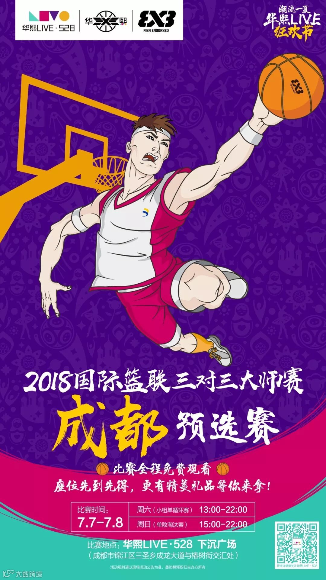 2018国际篮联三对三大师赛成都预选赛将于今明两天(7月7日-8日)在“华熙LIVE·528”下沉广场拉开帷幕。来自成都本土的16支球队将齐聚于此,共同争夺成都预选赛的锦标。冠军球队将代表成都3X3篮球的最高水平参战2018国际篮联三对三大师赛预选赛全国总决赛。