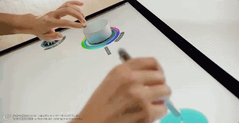 创新的微软智能电脑surface studio,真是设计师的福音。搭配上Surface Dial的辅助外设,可以魔幻性实现调色、换色、放大缩小以及旋转等多种操作,充分提高画家与设计师的做图效率,实际操作起来酷炫至极!