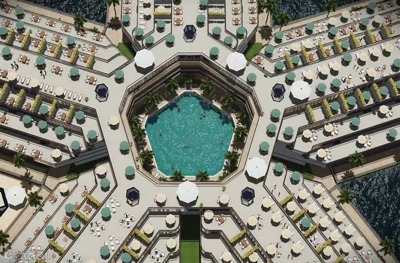 按照设计方案,这座海上之城是由多个五边形、长方形的人工岛屿构成,每个人工岛上都是独立的建筑物,可以是办公楼、酒店,也可以是运动场所、动物园。