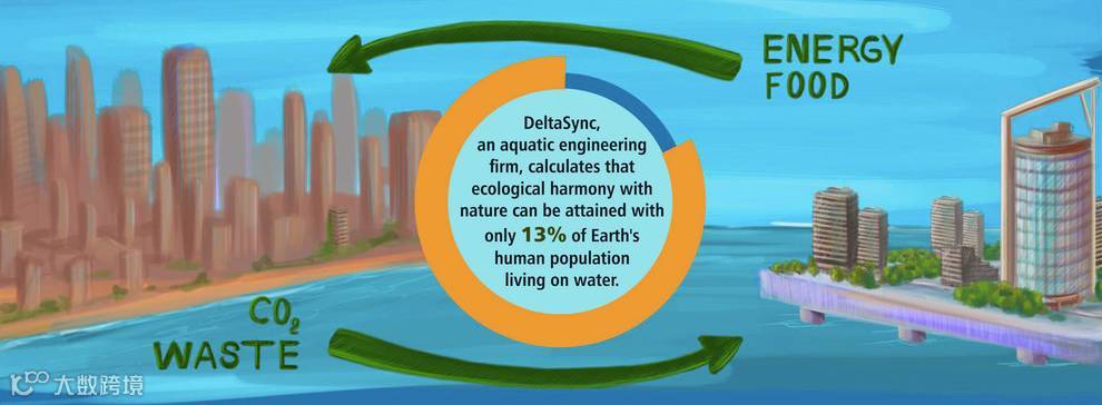 可以转换排出的废弃物和二氧化碳,转变成能源或者食物,再次提供给陆地城市。