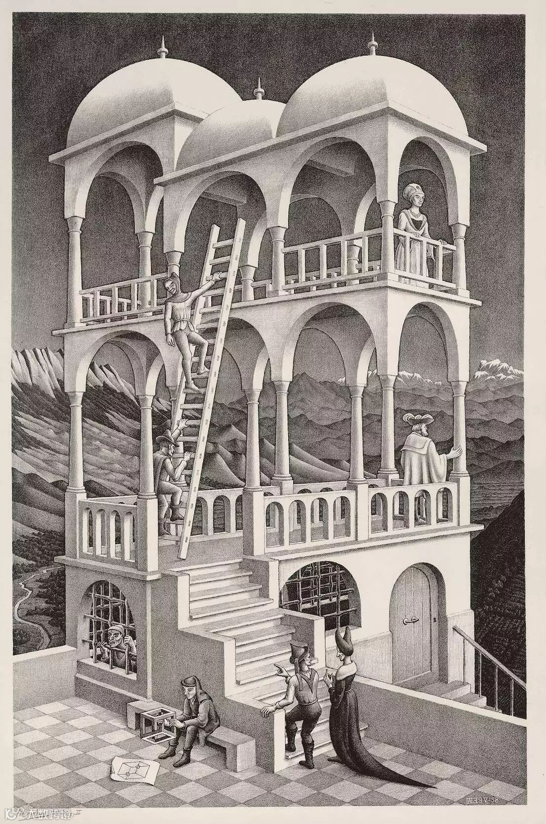 走到埃舍尔的作品前,