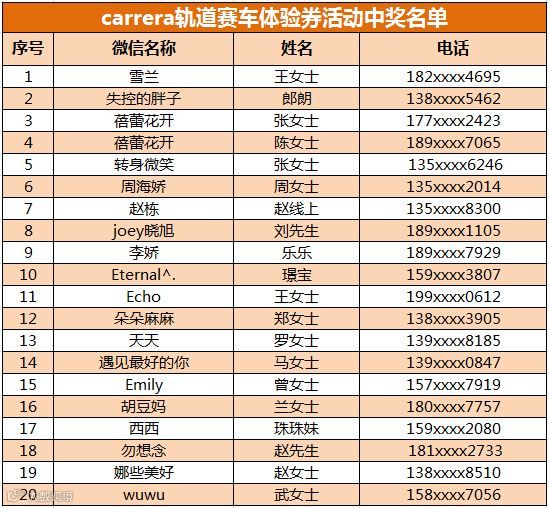 恭喜你们获得了carrera轨道赛车体验券一张