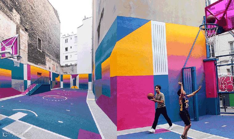 其中就包括了对篮球场的艺术改造