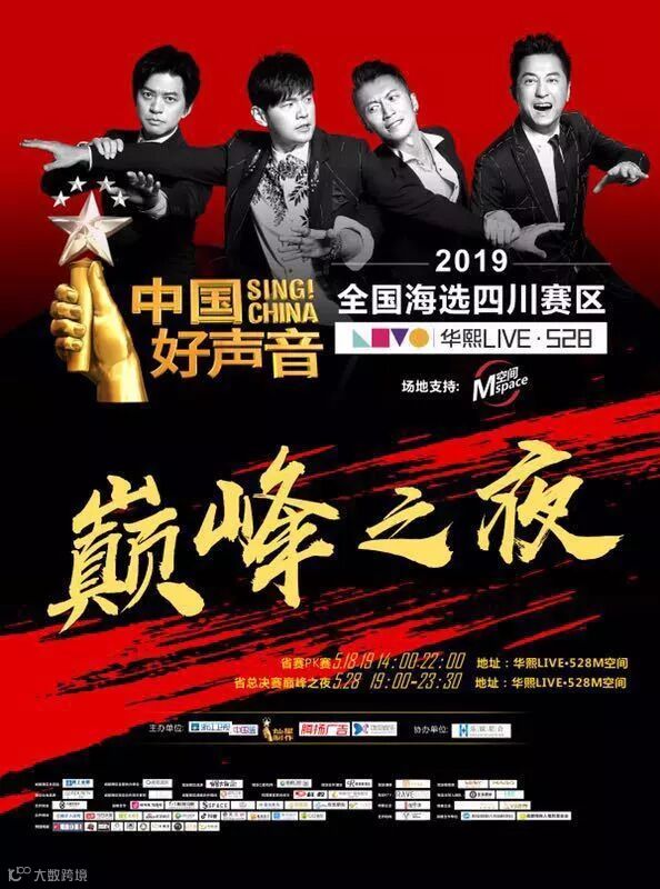 具体赛事信息请关注华熙LIVE·528官方微信公众号及《中国好声音》四川赛区官方微信公众号。