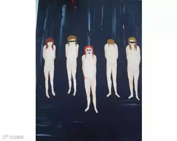 这位“人格”画家没有名字,她最喜欢用黑色画一些蒙着眼睛的裸体儿童的画面,显然是Noble 童年时代遭遇虐待的记忆。Noble曾公开表示,这是她最想去除的人格,并且因为“无名人”被艺术圈追捧感到痛苦。
