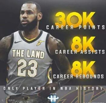4. 常规赛唯一30000+8000+8000詹姆斯是历史上首位拿到30000分8000个篮板8000次助攻的球员,这对球员的要求是高产且全勤,这意味着一位球员即使每个赛季都是全勤,还要在联盟效力14个年头,并且场均至少要得到26.1分6.97板6.97助攻数据才行。即使像近年来,哈登、韦少这样三双常客,都难以赶上詹姆斯这一纪录。