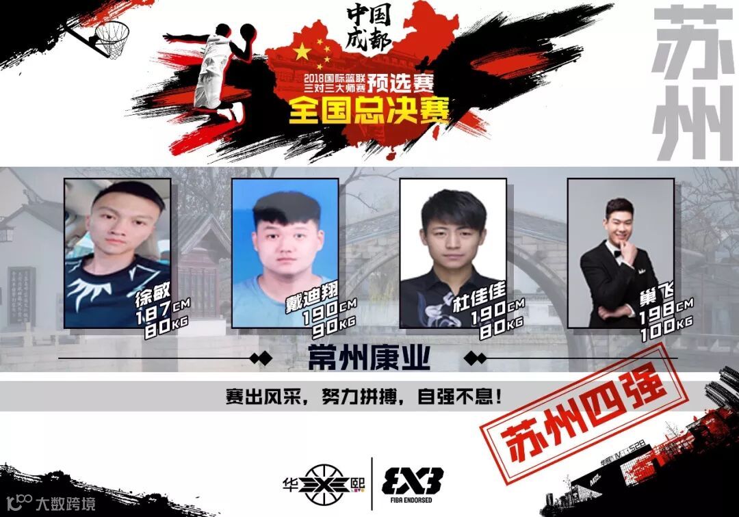 来自苏州预选赛的常州康业队由徐敏、戴迪翔、杜佳佳、巢飞组成。作为华熙3X3的常客,他们去年就曾参战全国总决赛。再度来袭,相信他们做好了充足的准备。