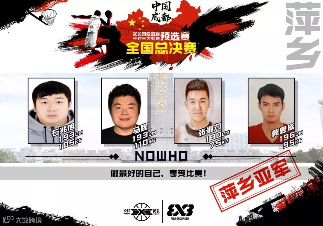 同样来自萍乡预选赛的NOWHO队的由石兆旭、马隆、张景力、冀昱成组成。队中核心马隆有着恐怖的远投能力,能攻善防的他想必会为球队“攻城拔寨”。