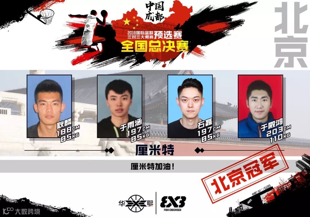 来自北京的厘米特队由耿麟、于雨涵、石磊、于殿鸿组成。球队核心耿麟身体素质出众;于雨涵身为小前锋脚步灵活,有着一手出色的远投能力;内线“支柱”于殿鸿来自NBL联赛,他防守拼抢积极、作风硬朗,进攻手段多样化,能内能外;身高197cm的球队锋线得分手石磊则是善长中远投射及突破分球。