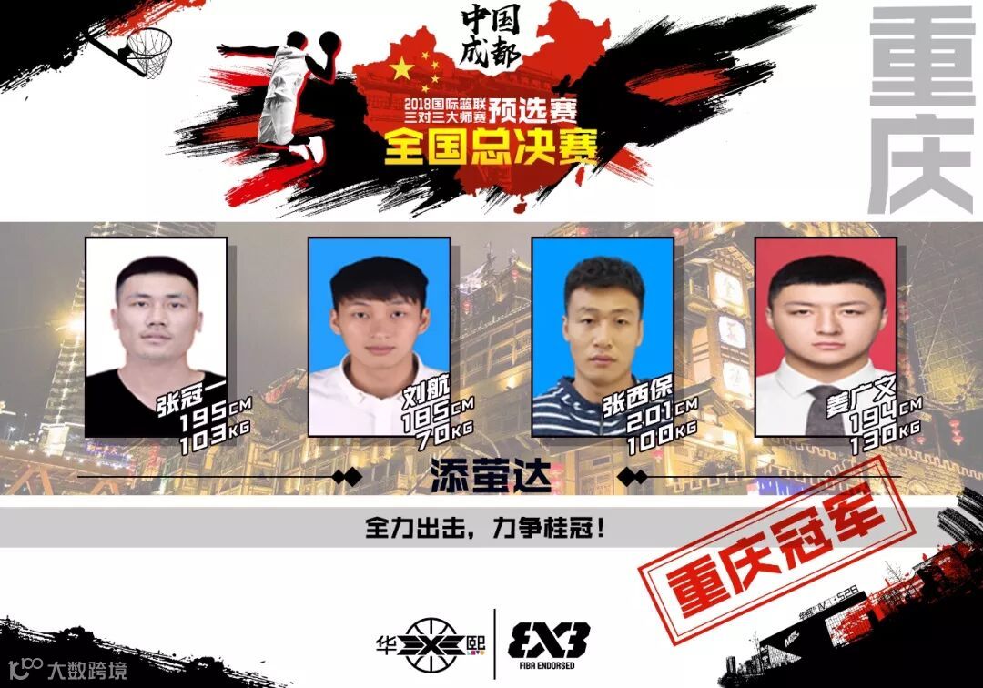 来自重庆的添萤达队由张冠一、刘航、张西保、姜广文组成。队中核心球员刘航能突善投,再加上张冠一、姜广文以及内线悍将张西保的坐镇,他们绝对有着十足的冲击力。