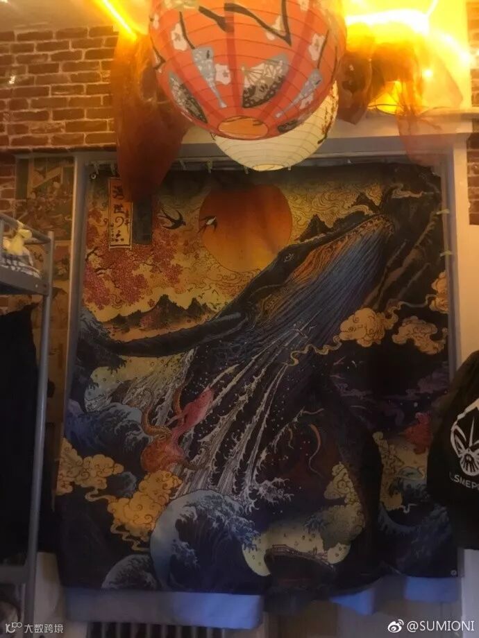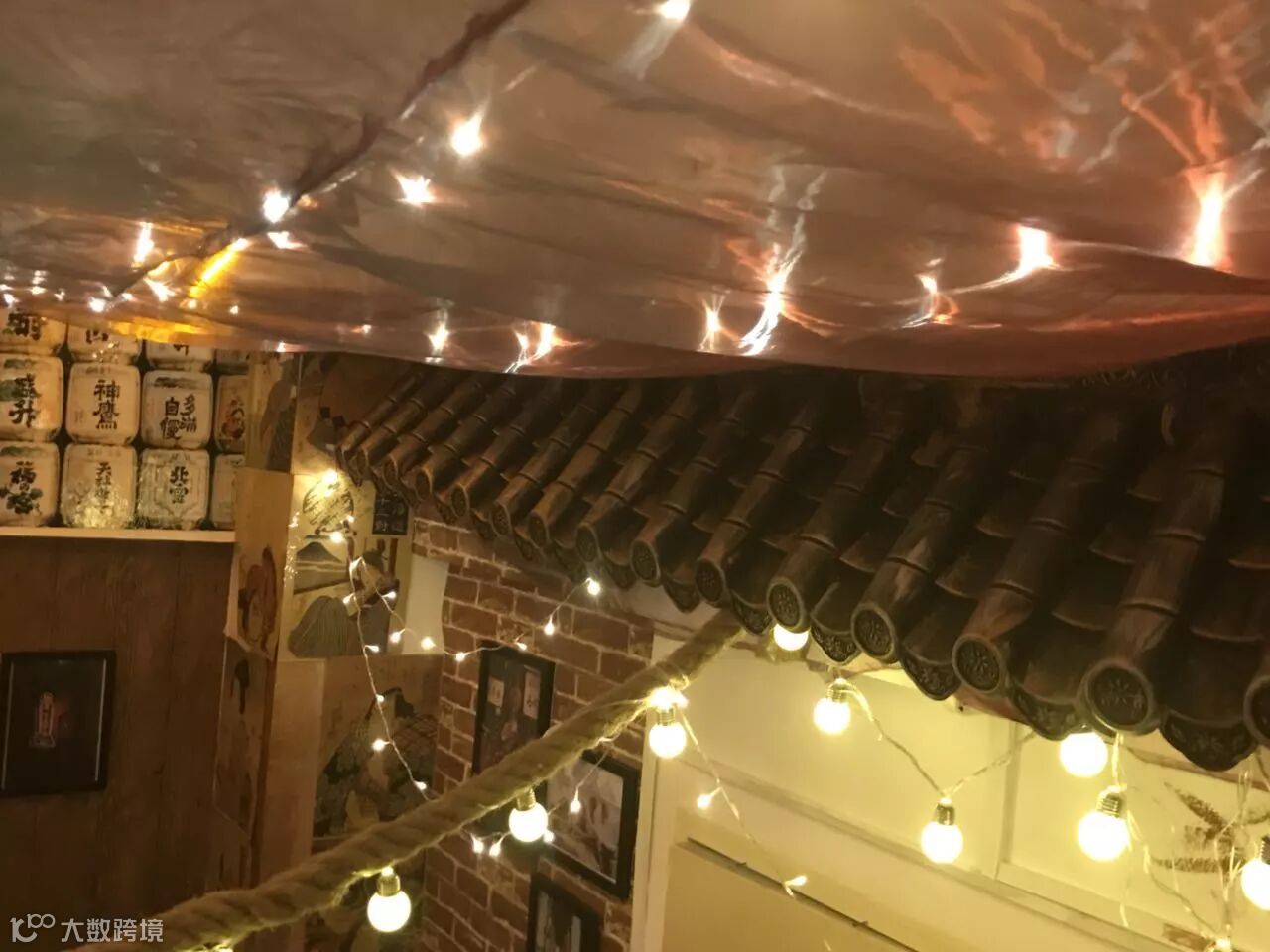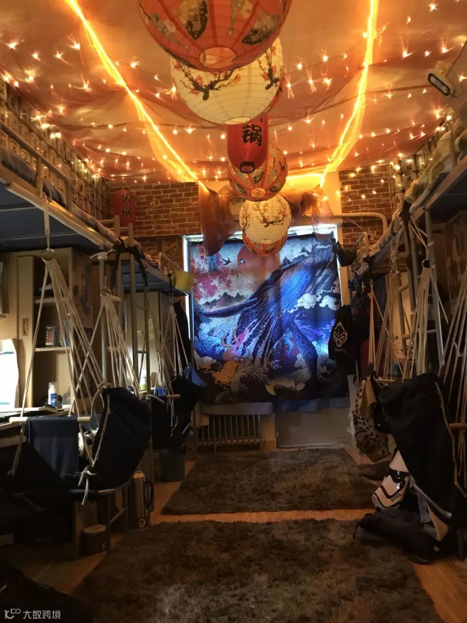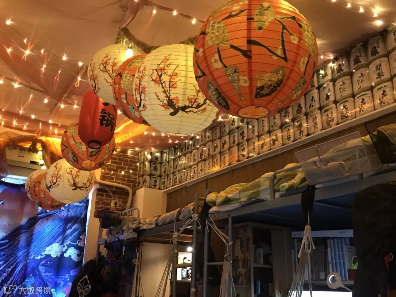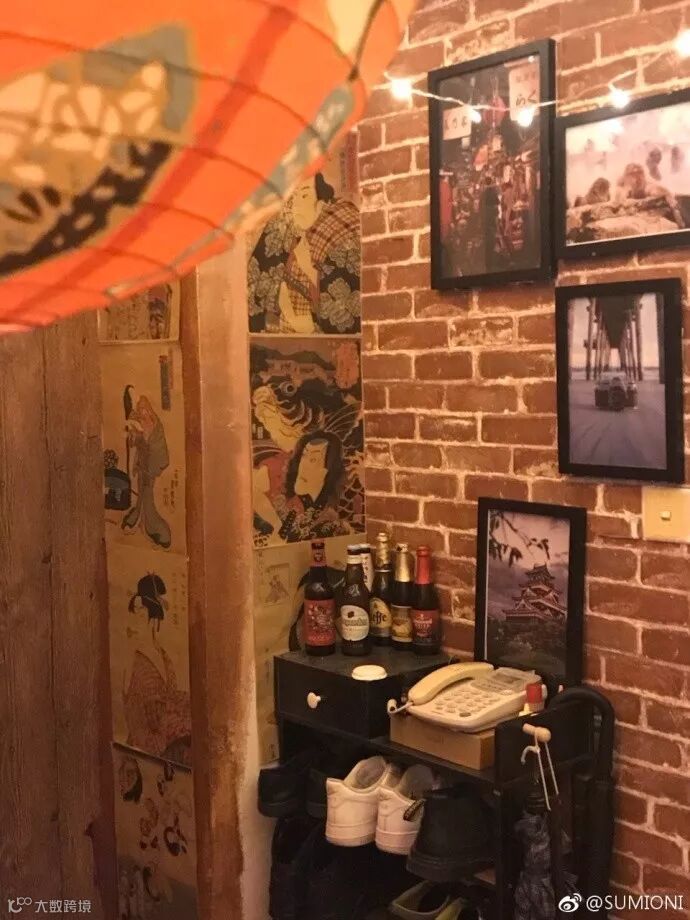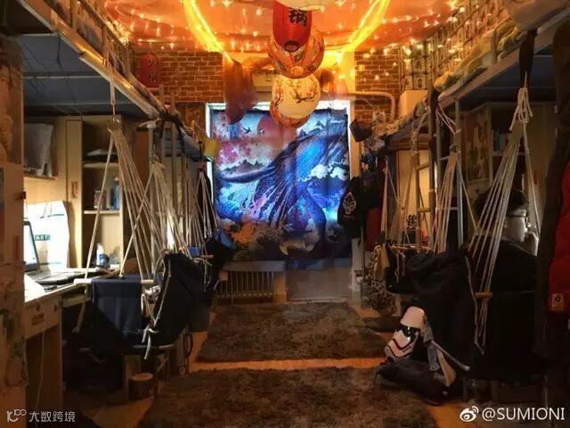 不要震惊,这就是别人家的宿舍,他们参考了日本居酒屋的装修风格,挂上牌匾、彩灯、和风纸灯笼,还装了仿青瓦的假屋檐,墙上贴着仿墙砖的墙纸……