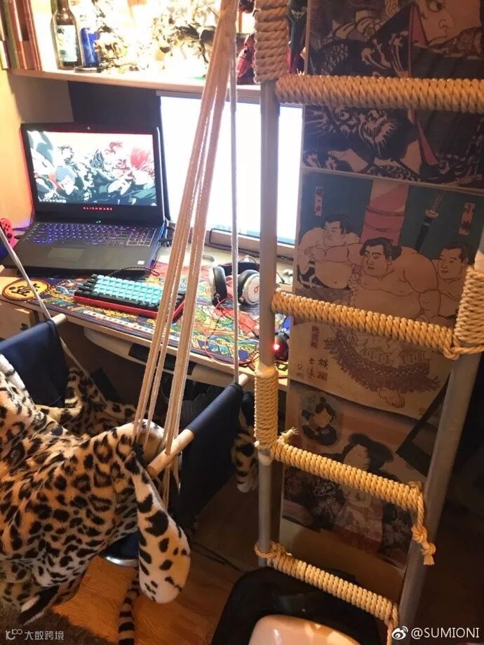 房间还特地安装了两根黄光led灯和暖白色led小灯串,这灯光一打,恍惚间不知身在何处?