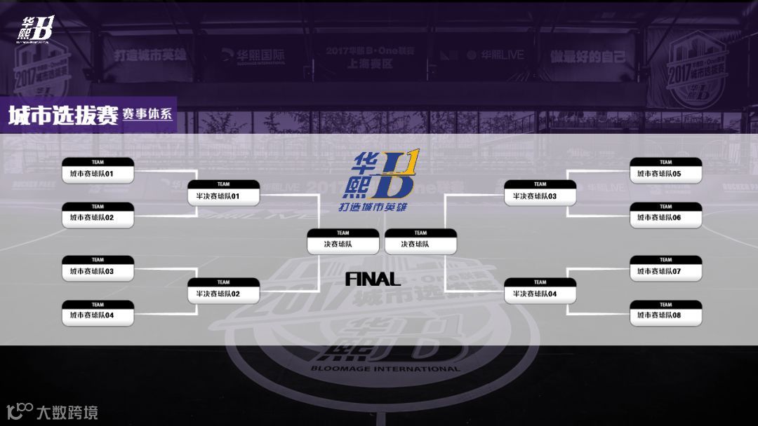 城市选拔赛每站8支球队,采用单败淘汰的赛事规则,最后只有一支球队突出重围,拿到全国总决赛的通行证。