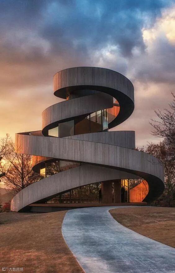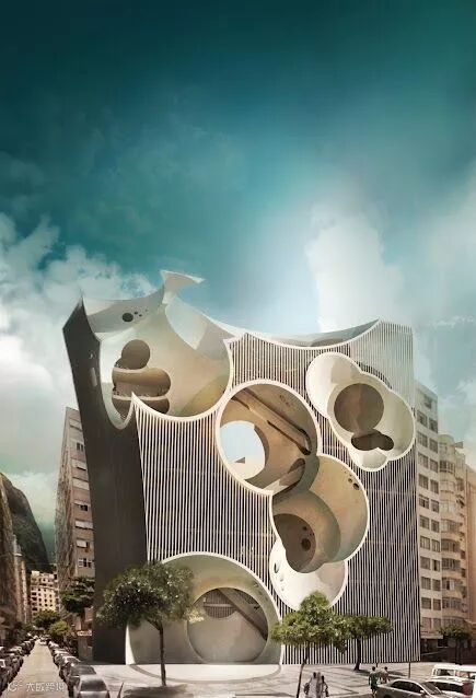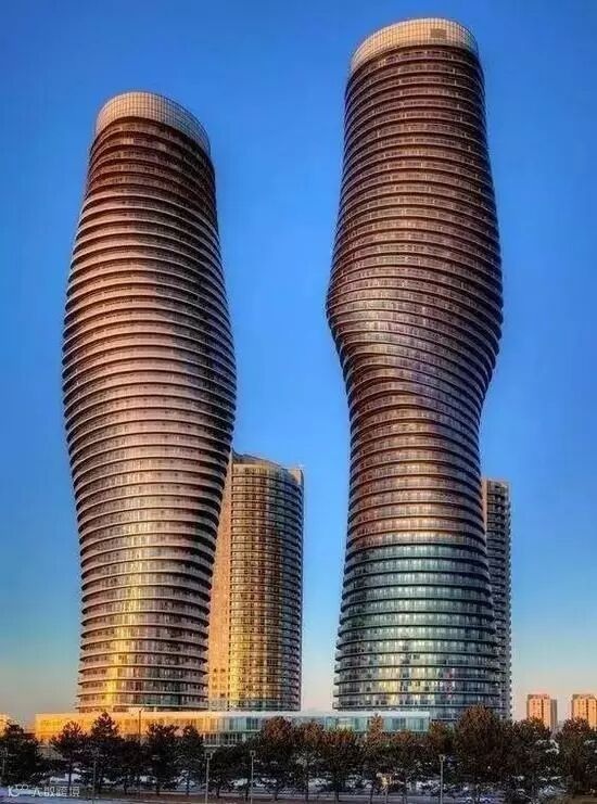 这是加拿大安大略省的一个双子公寓楼,弯曲的形状仿佛橡皮泥被捏出来的样子。