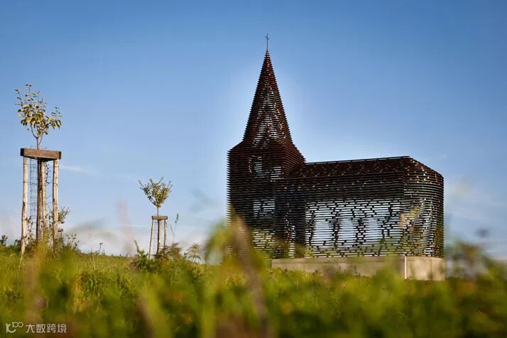 这个教堂是由生锈的钢铁板搭建而成,精细的设计形成一百个堆砌的层次。这些层次之间的缝隙使观者能够穿透空间,视野到达彼 岸。这个项目的名称其实是叫 Reading between the Lines