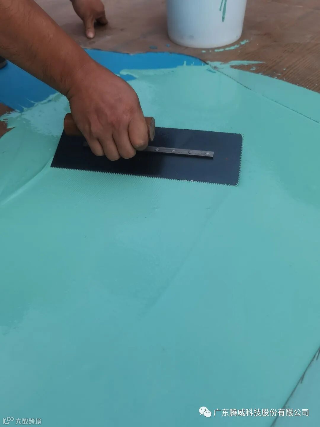 第三步:填补抗碱防水快速修补底胶T-007(蓝色,厚度1mm)