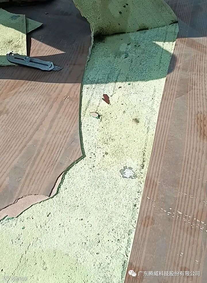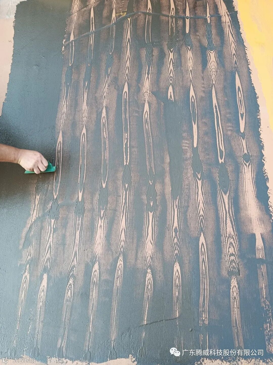 第六步:滚涂第二道面层(现场为木纹硅PU,面层刮出纹路),修复完成