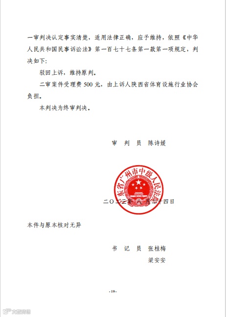 导读:法院判定:陕西省体育设施行业协会二审上诉请求不成立,驳回上诉,维持原判。