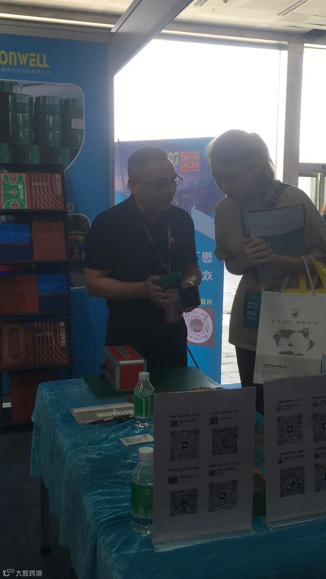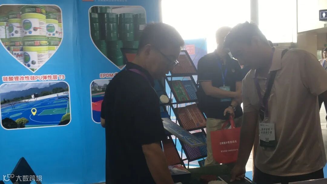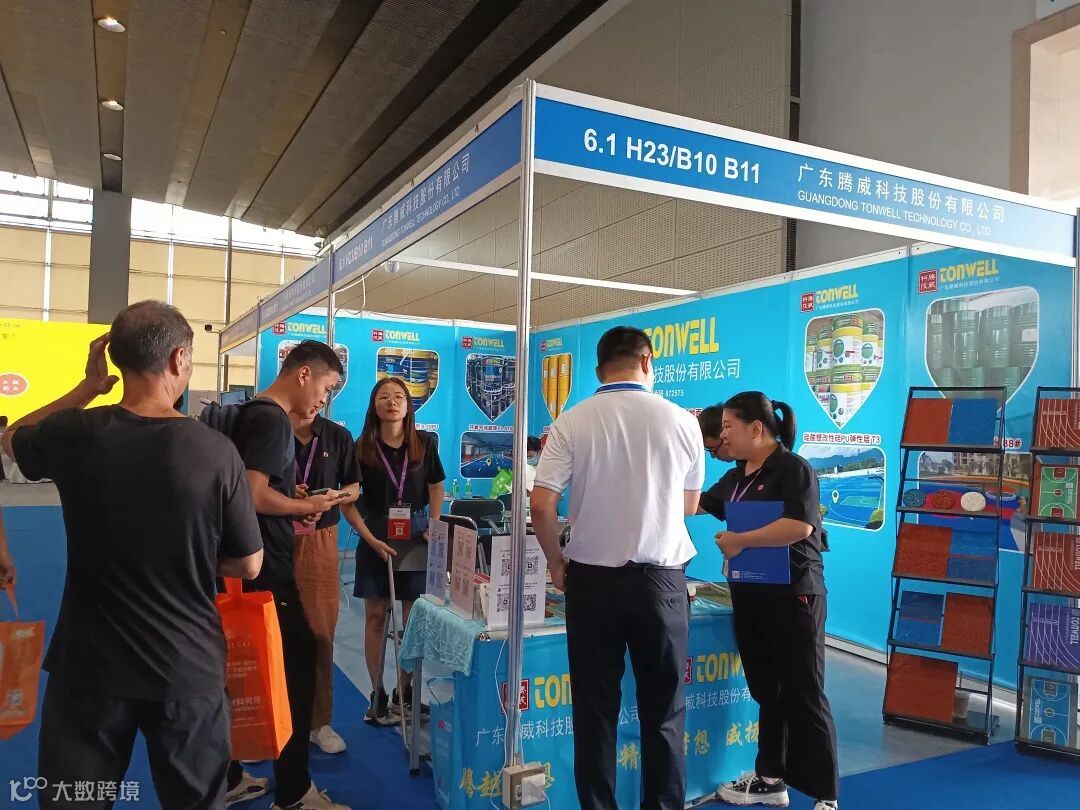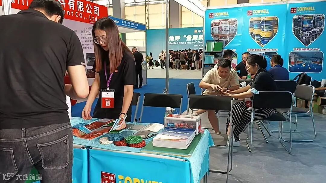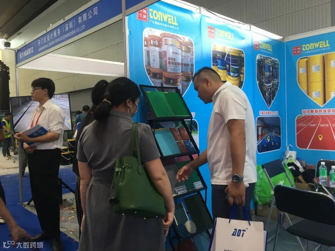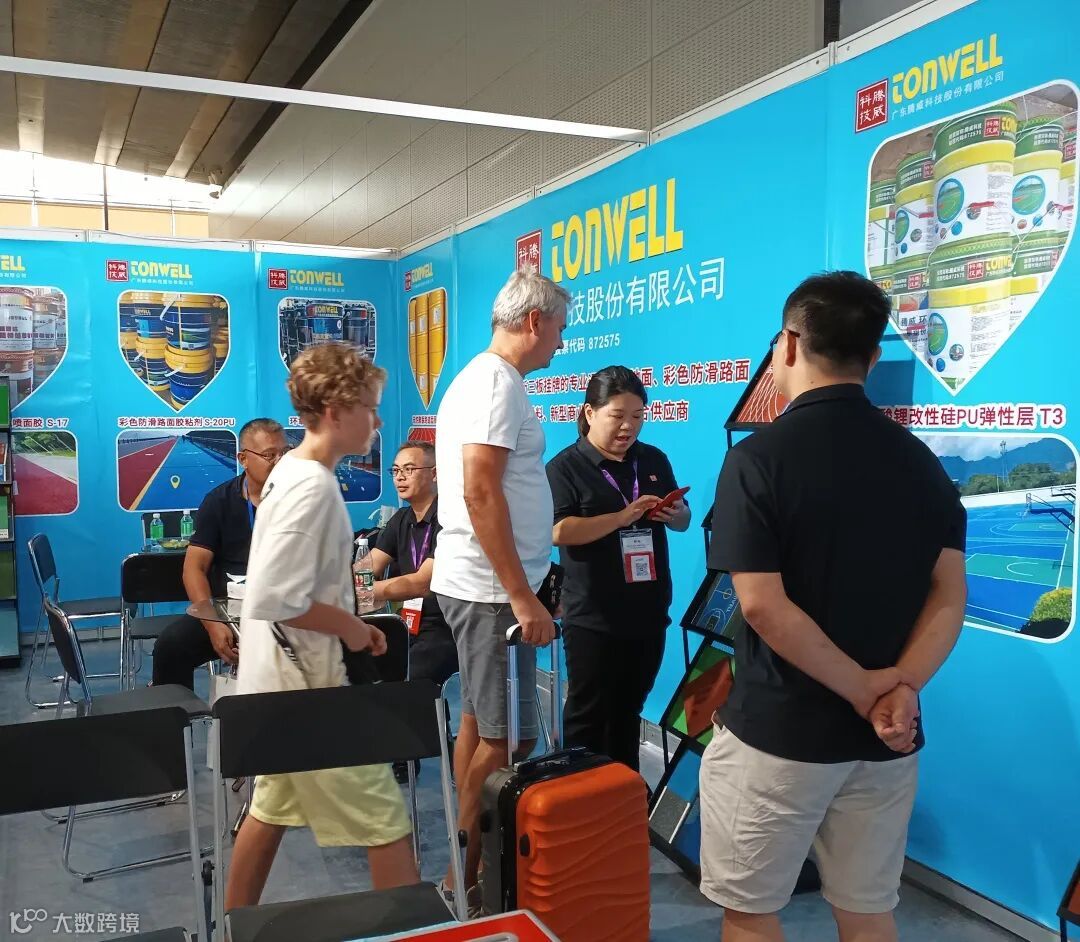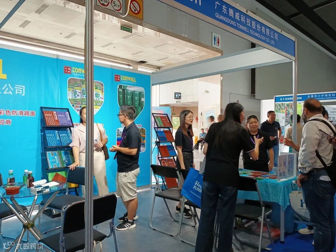 广东腾威科技携运动地面铺装材料、市政路面铺装材料、工商业地坪材料亮相,展位吸引众多观众驻足咨询、洽谈。