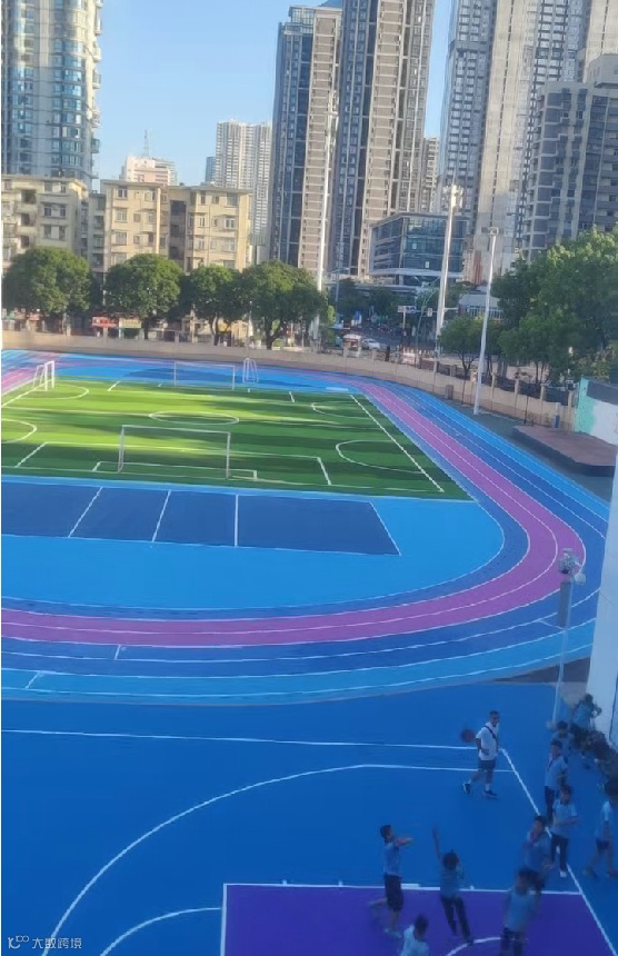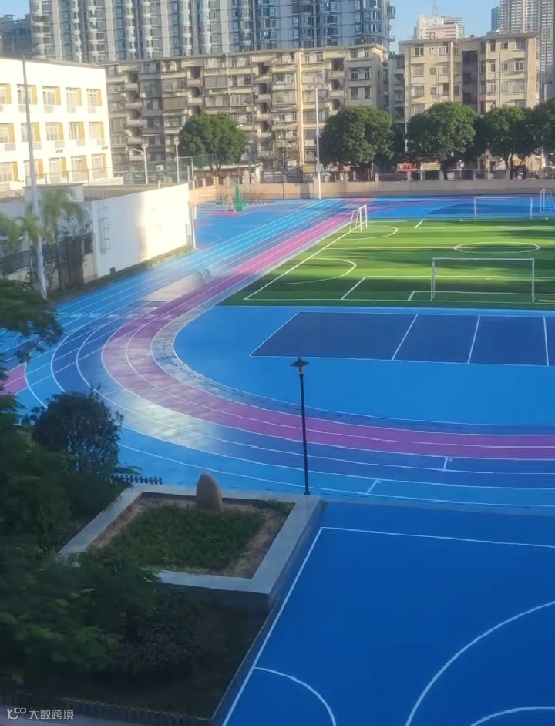 2025年学校的操场跑道和球场已进行翻新改造,具体包括200米紫蓝色跑道、轮滑区及篮球场、足球场等设施。塑胶跑道采用我公司供应的硅烷聚脲跑道材料,球场采用我公司硅酸锂改性硅PU材料。