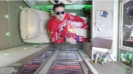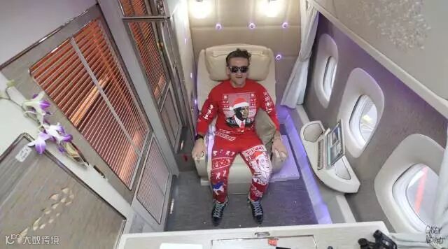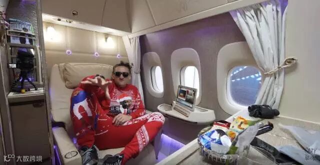 体验新东西嘛,外国大叔习惯性将自己乘坐这个超级豪华头等舱的经过,拍了下来;用镜头带吃瓜群众们,来了一次360°全方位的体验。