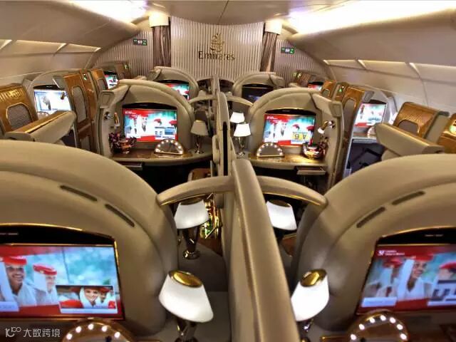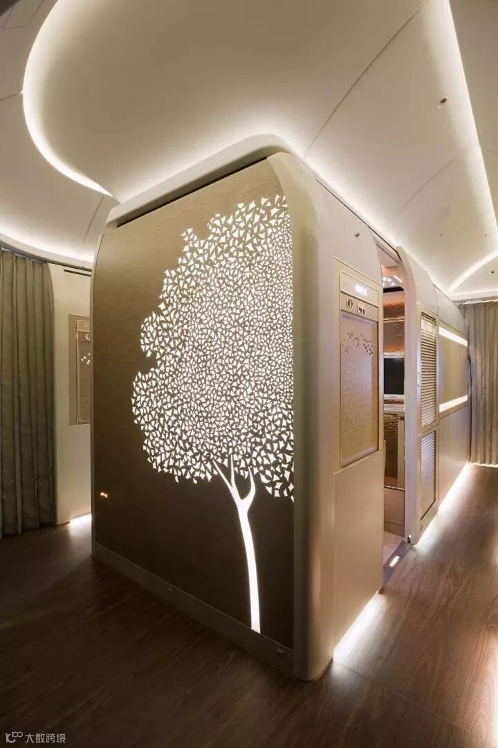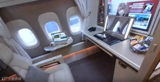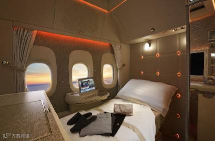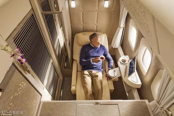 阿联酋航空,波音777客机头等舱,被称为“Hotel in the sky天空中的酒店”,提供完全私密空间的头等舱。