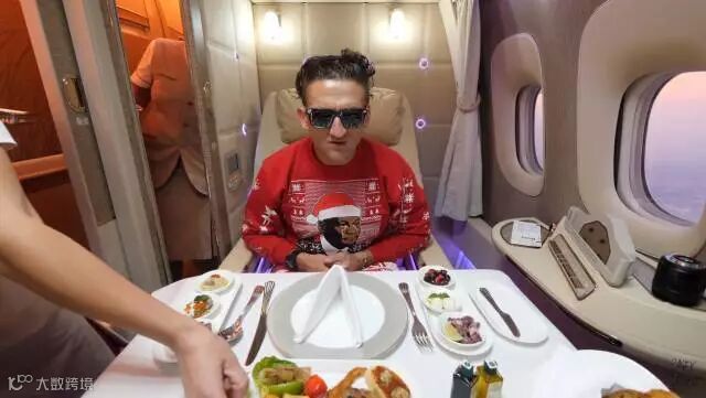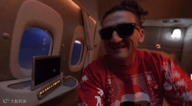 第一次坐777的头等舱,大叔的兴奋可以从屏幕中溢出来。